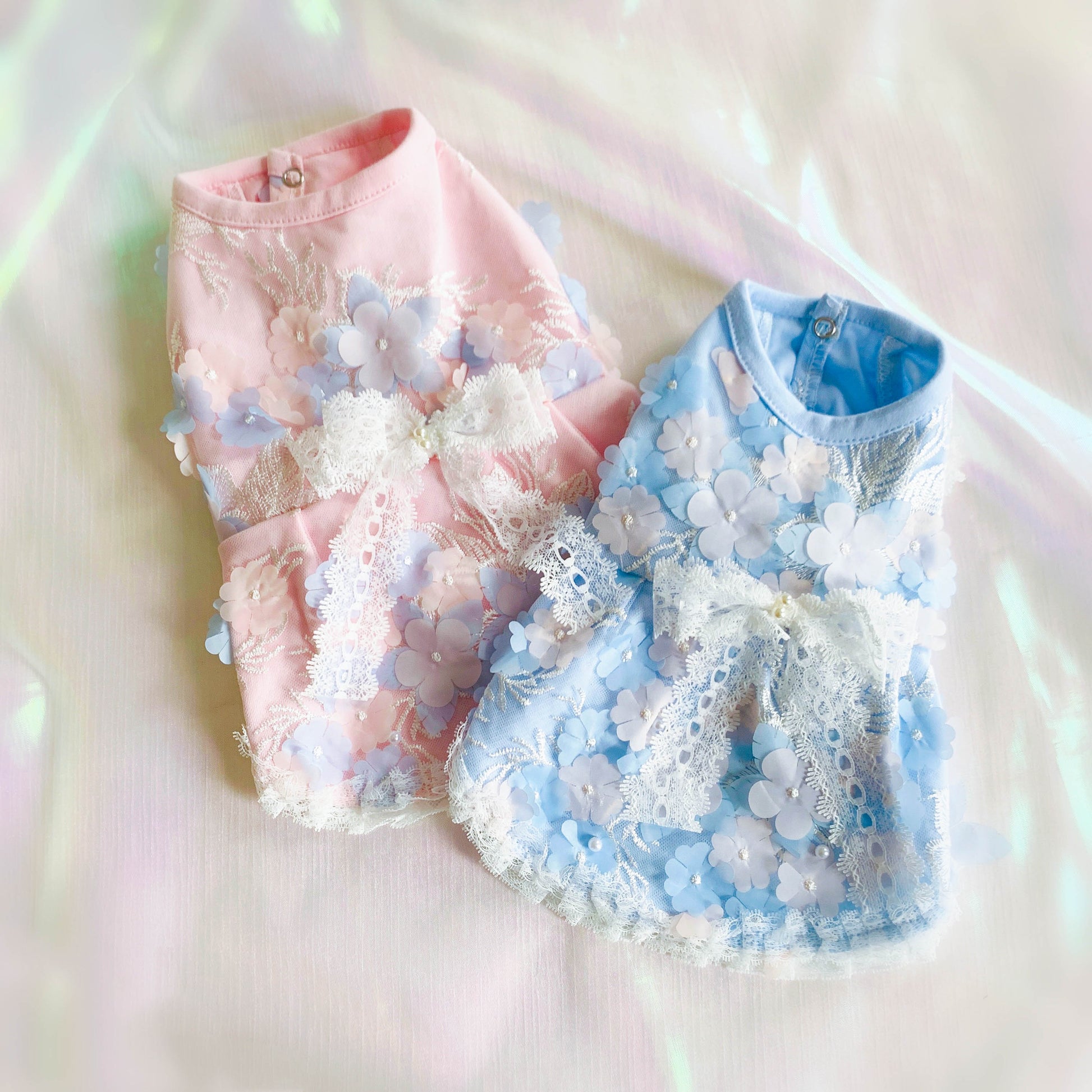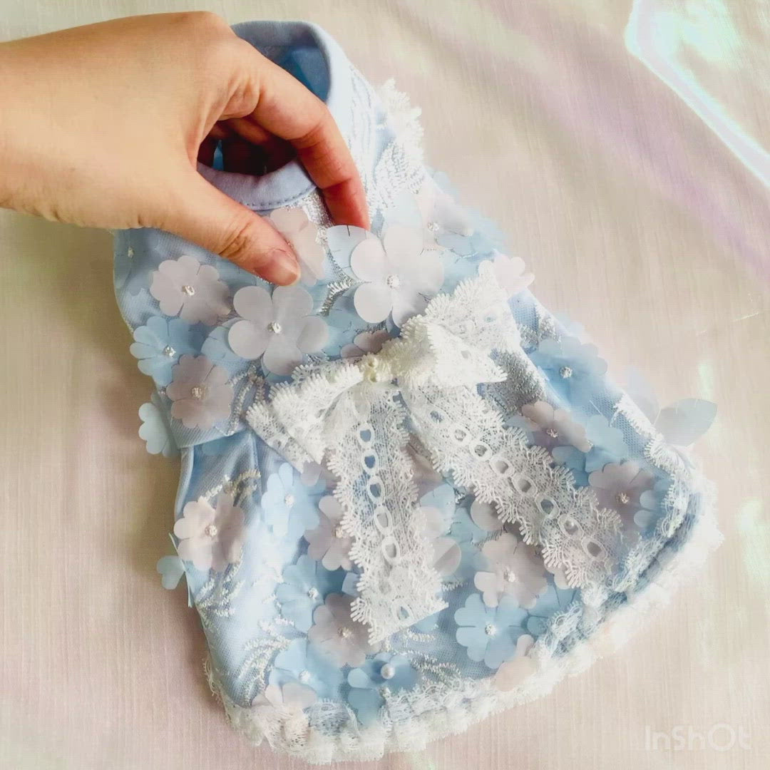 Cute, light-weight pet sleeve-less dress adds a dreamy color to your pet. The vest dress design allows maximum comfort for your pet to move around while being stylish. 3D flower and pearl details makes the dress, one of a kind addition to your pet's wardrobe!