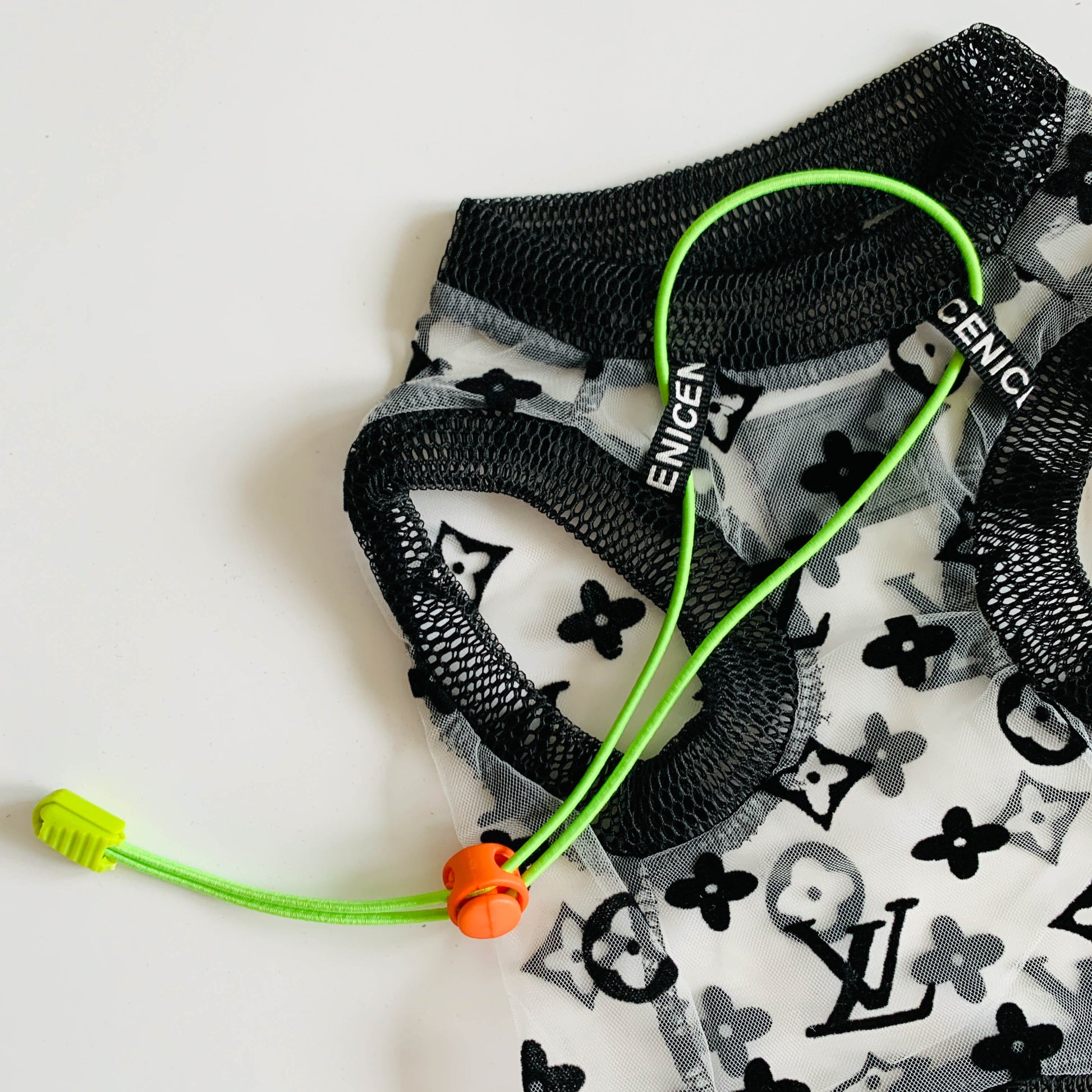 Summertime fashion trend - sheer transparent mesh top! With bold letters and bright sporty decorations, making it a cool addition to your pet's closet. Make your furry friend Instagram show-ready, and also perfect to serve as a gift