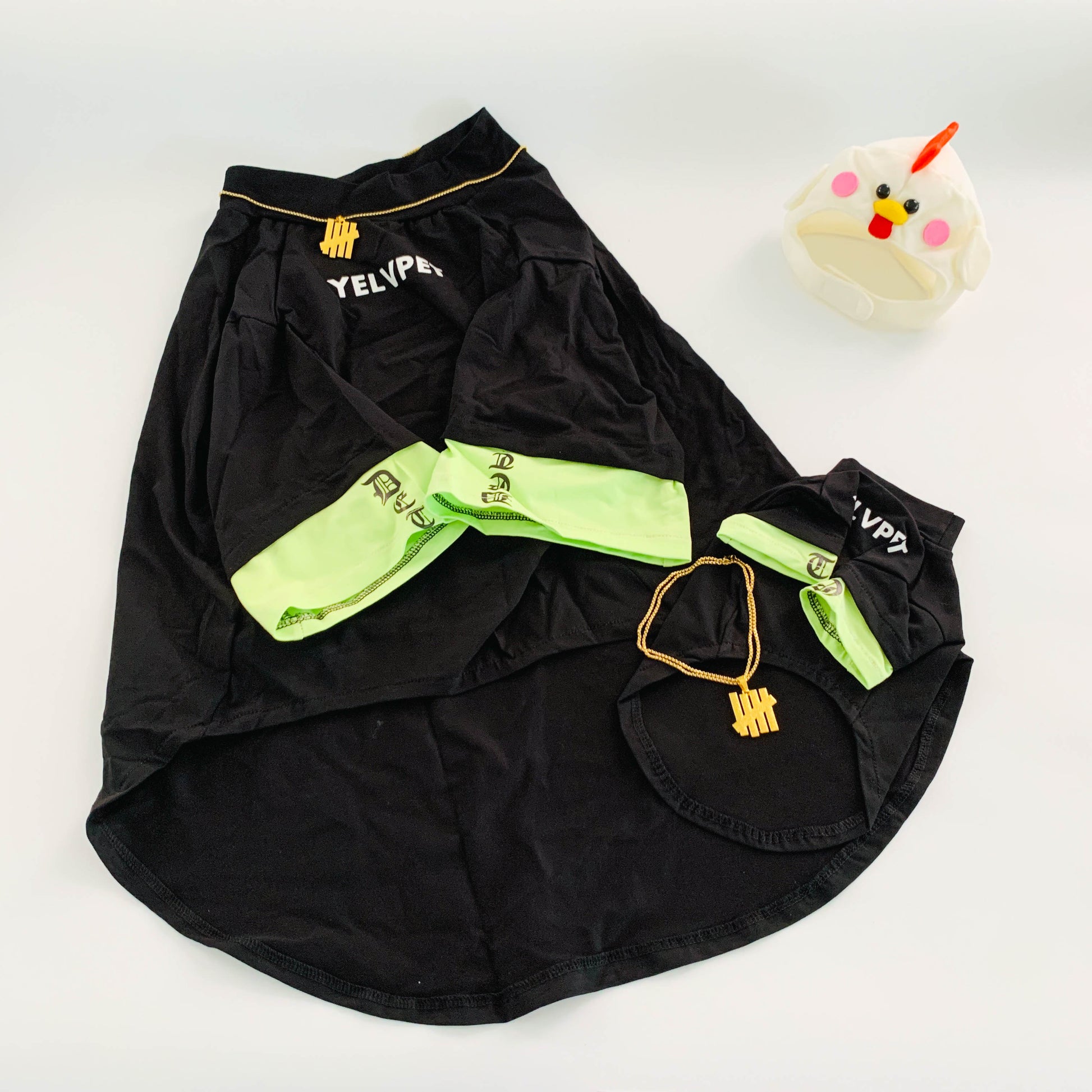 Classic black with bright and bold neon yellow sleeves, makes the shirt fashion and pop. Thick and soft material makes it a quality addition to your furry baby's wardrobe