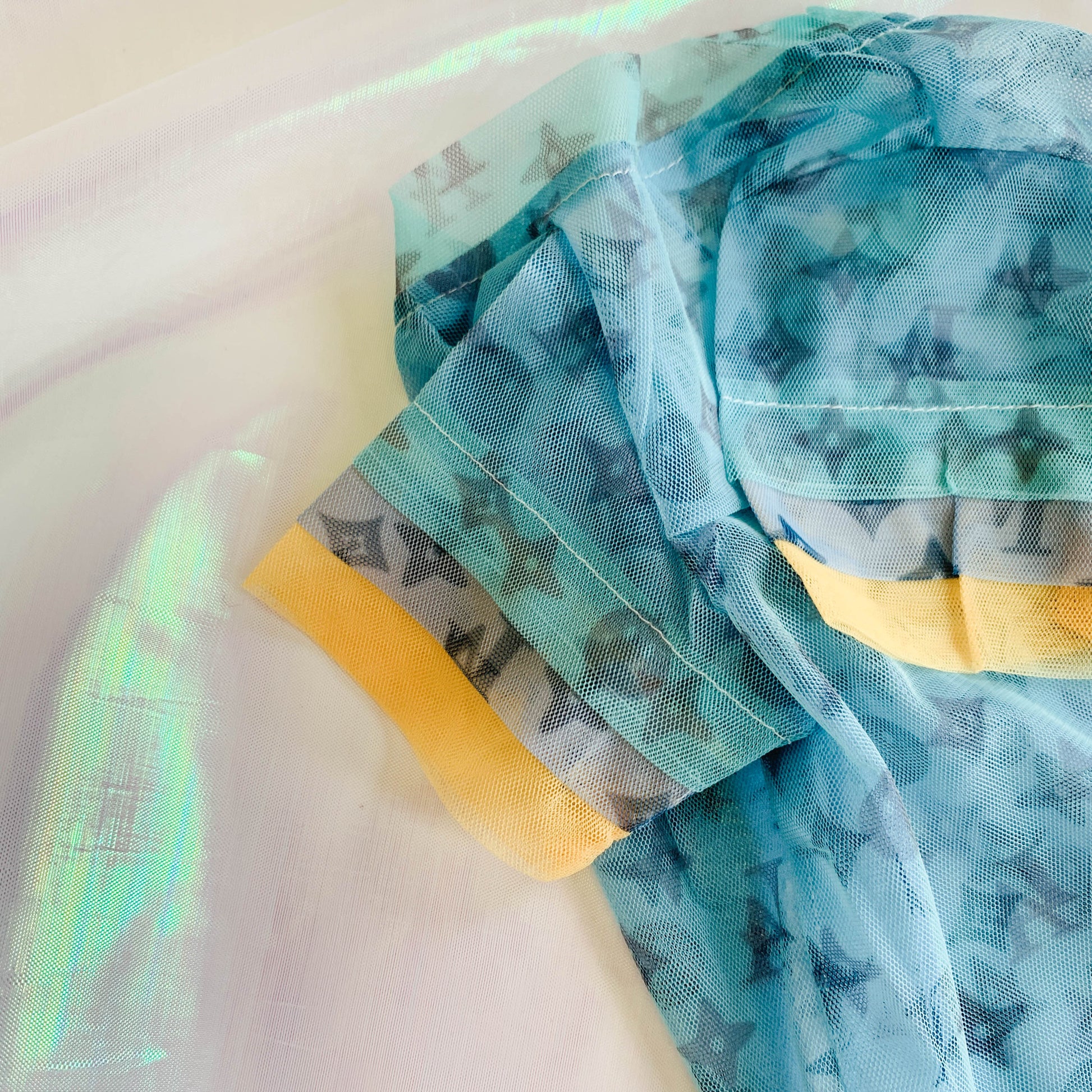 Join the happy summer party with the most updated summer fashion trend - sheer pattern top! With LA letters and smiley faces to light up you and your pet's mood!