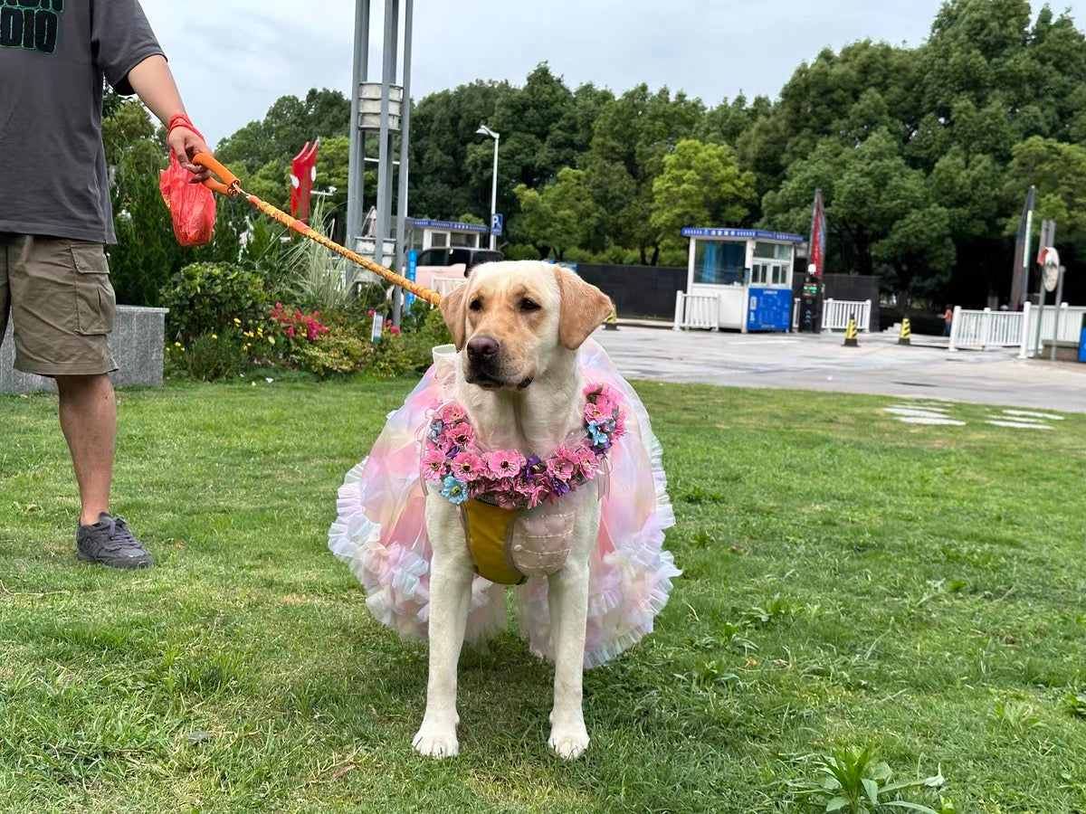 Put a spring in your step – and your pup's – with our Rainbow Fairy Fantasy Rainbow Butterfly Wings Spring Summer Dog Cat Teddy Pet Dress! Show off your style and your love for color with this whimsical, eye-catching dress, perfect for adding a touch of fantasy to your pup's wardrobe. Let your pup be the best-dressed animal in the park in this unique, one-of-a-kind apparel!