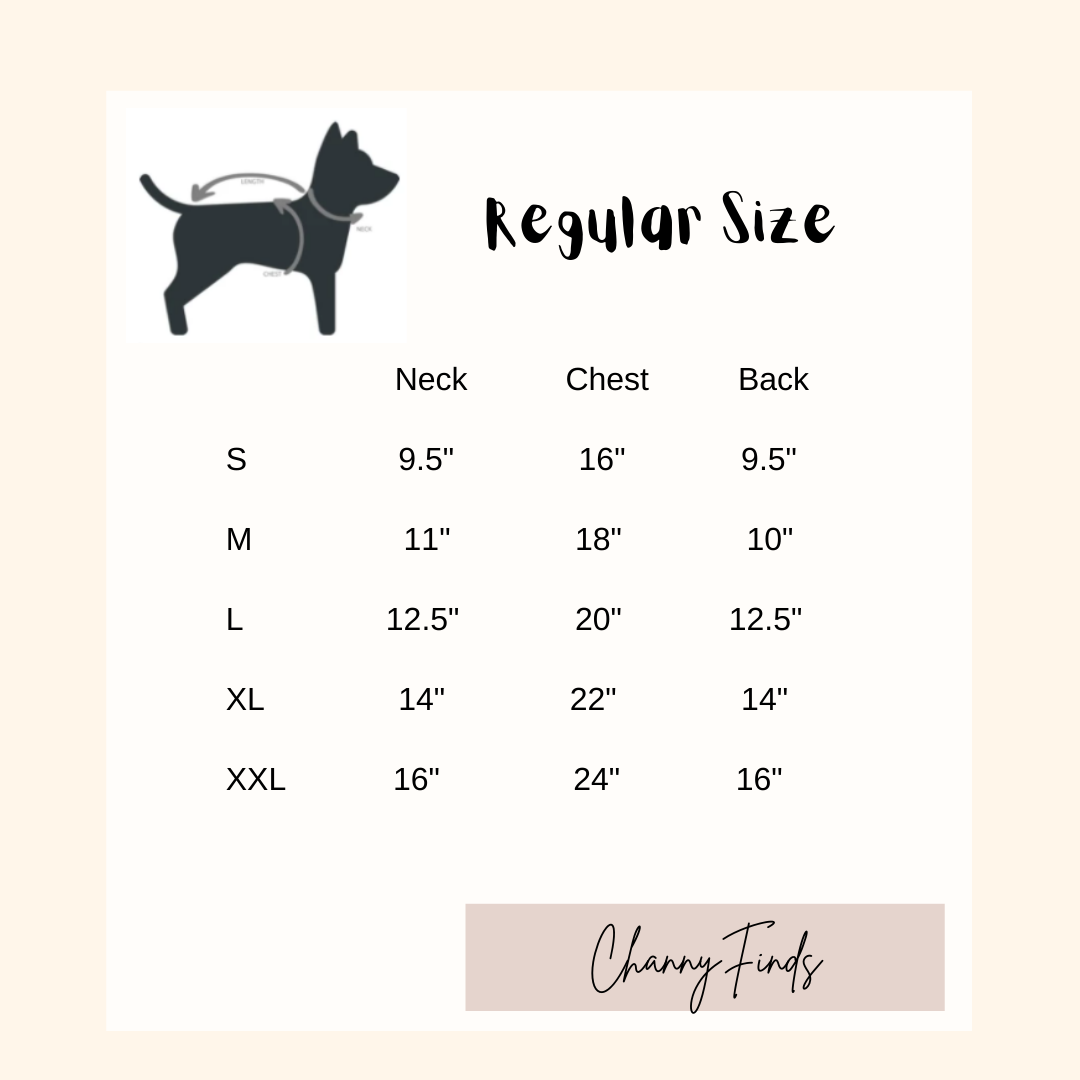 Size reference: Model Niu Niu, 8.6lb Pomeranian. Neck 11" Chest 16". Size Medium is a perfect fit