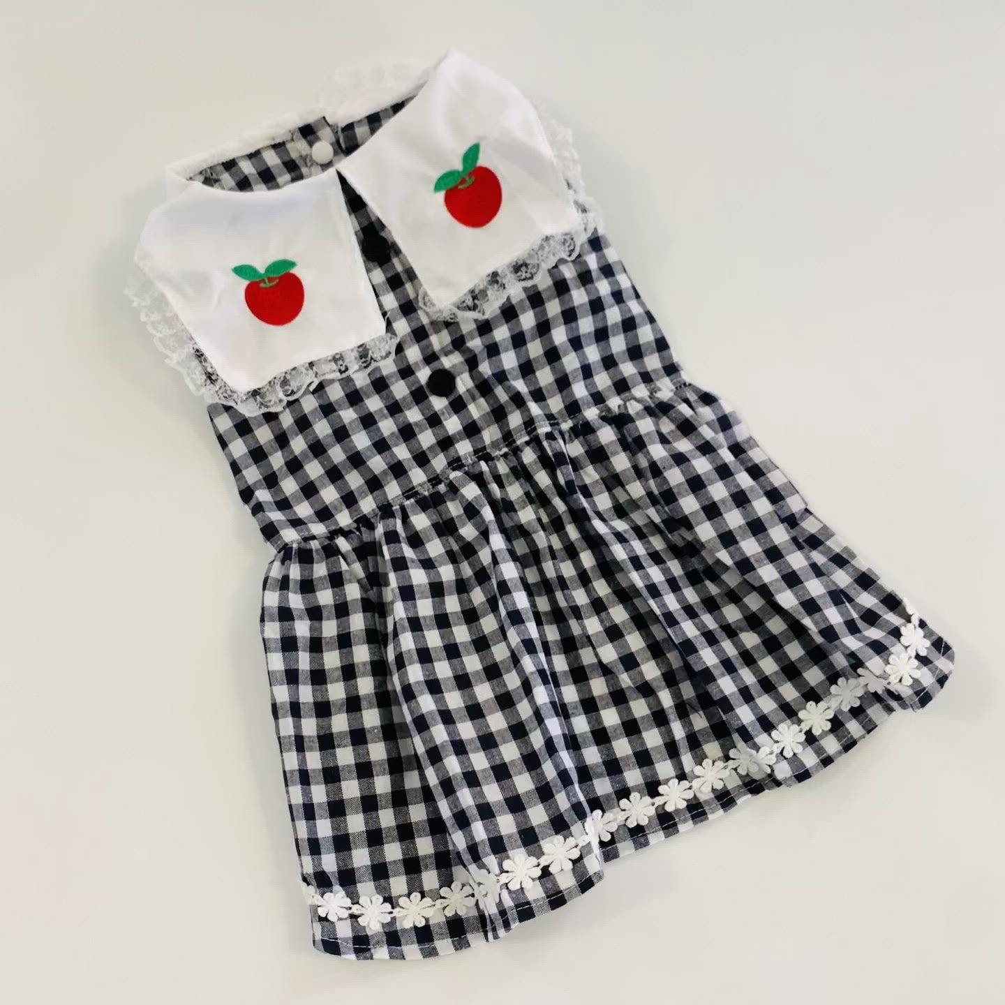 Summer Plaid Monochrome Pet Dress w Red Apple Embossing | Pet Stylish Dress